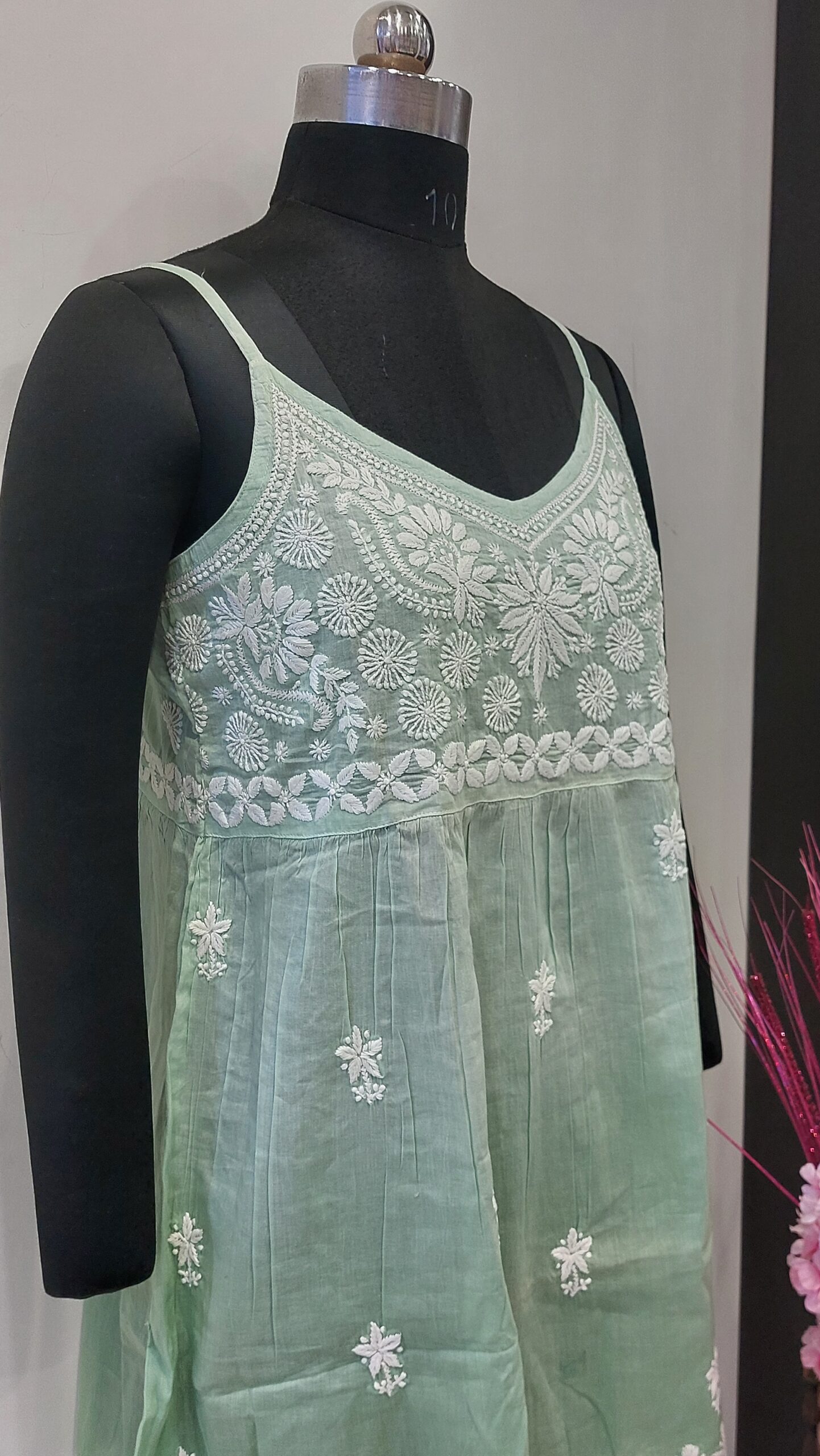 The minimal noodle strap silhouette allows the intricate hand embroidery to take center stage, celebrating the beauty of slow fashion and traditional artistry. Subtle, elegant, and versatile, this piece blends heritage craftsmanship with contemporary styling.