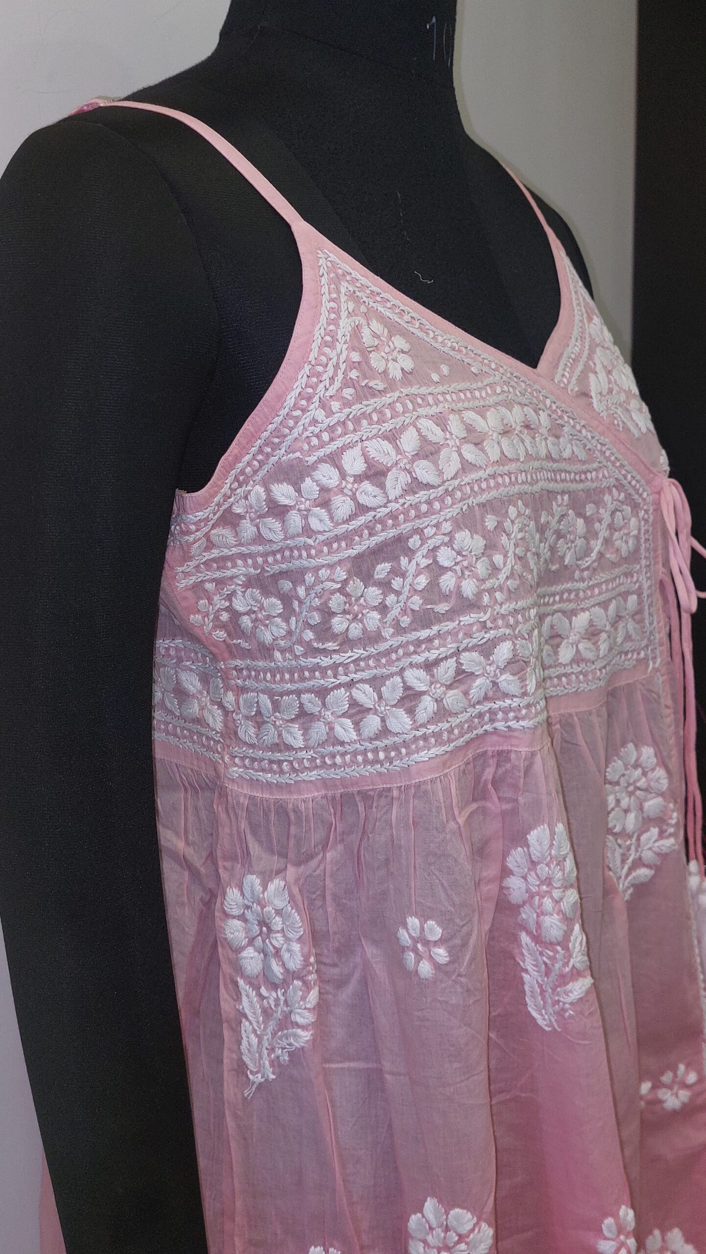 The minimal noodle strap silhouette allows the intricate hand embroidery to take center stage, celebrating the beauty of slow fashion and traditional artistry. Subtle, elegant, and versatile, this piece blends heritage craftsmanship with contemporary styling.