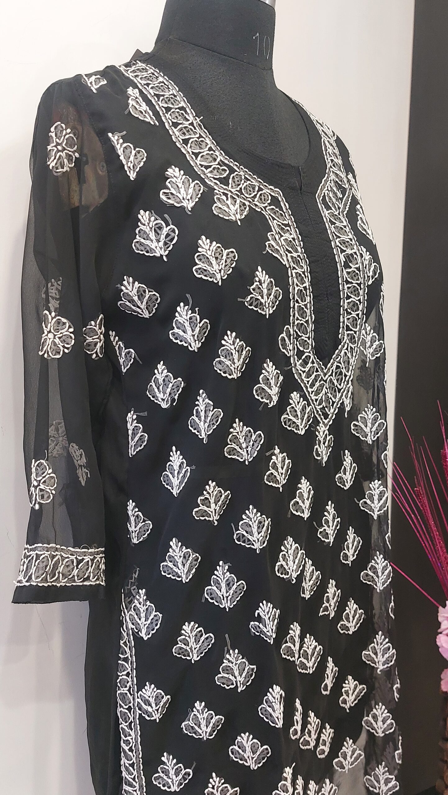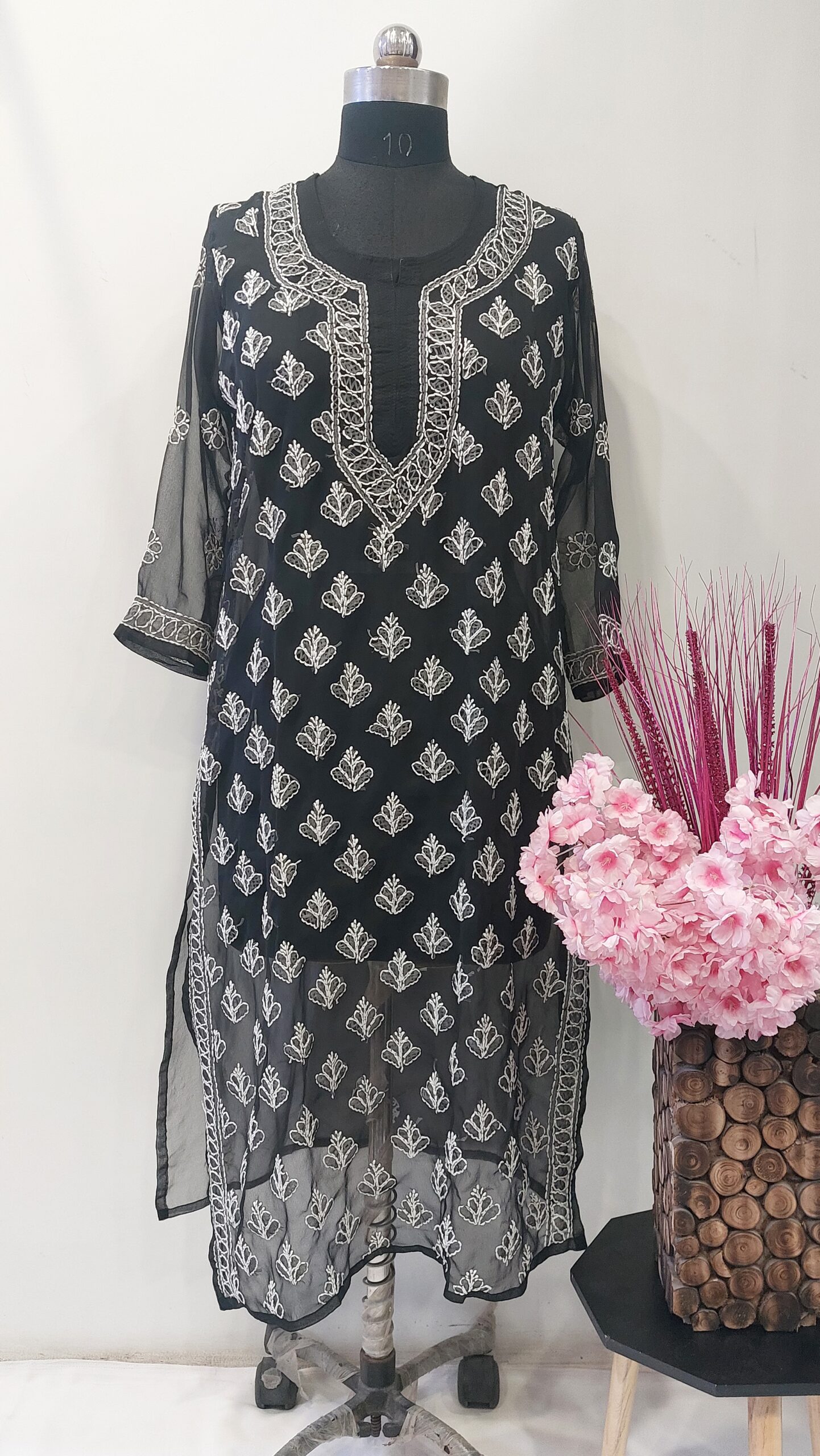 Soft, breathable, and comfortable to wear, faux georgette holds embroidery and prints beautifully, making it an excellent choice for garments with intricate work such as Lucknowi chikankari. Its wrinkle-resistant nature and smooth fall make it ideal for both everyday wear and special occasions.