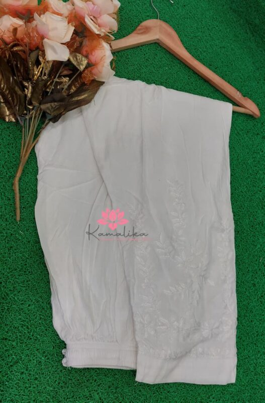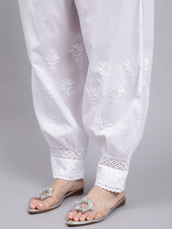 KAMALIKA Lucknowi Chikankari Afghani Salwar-Style Pants White & Dyeble