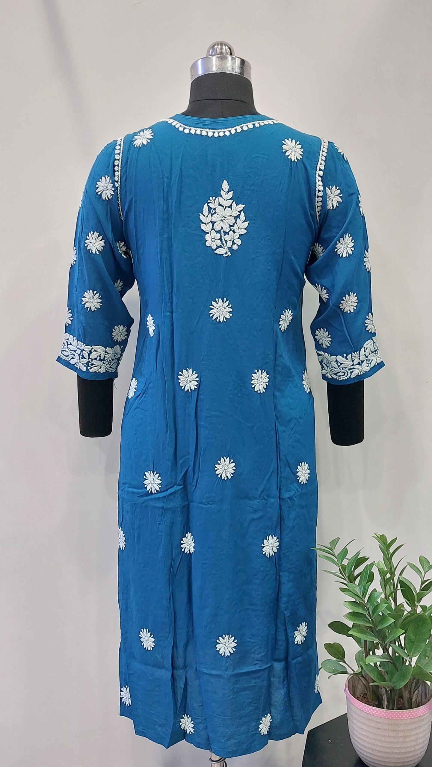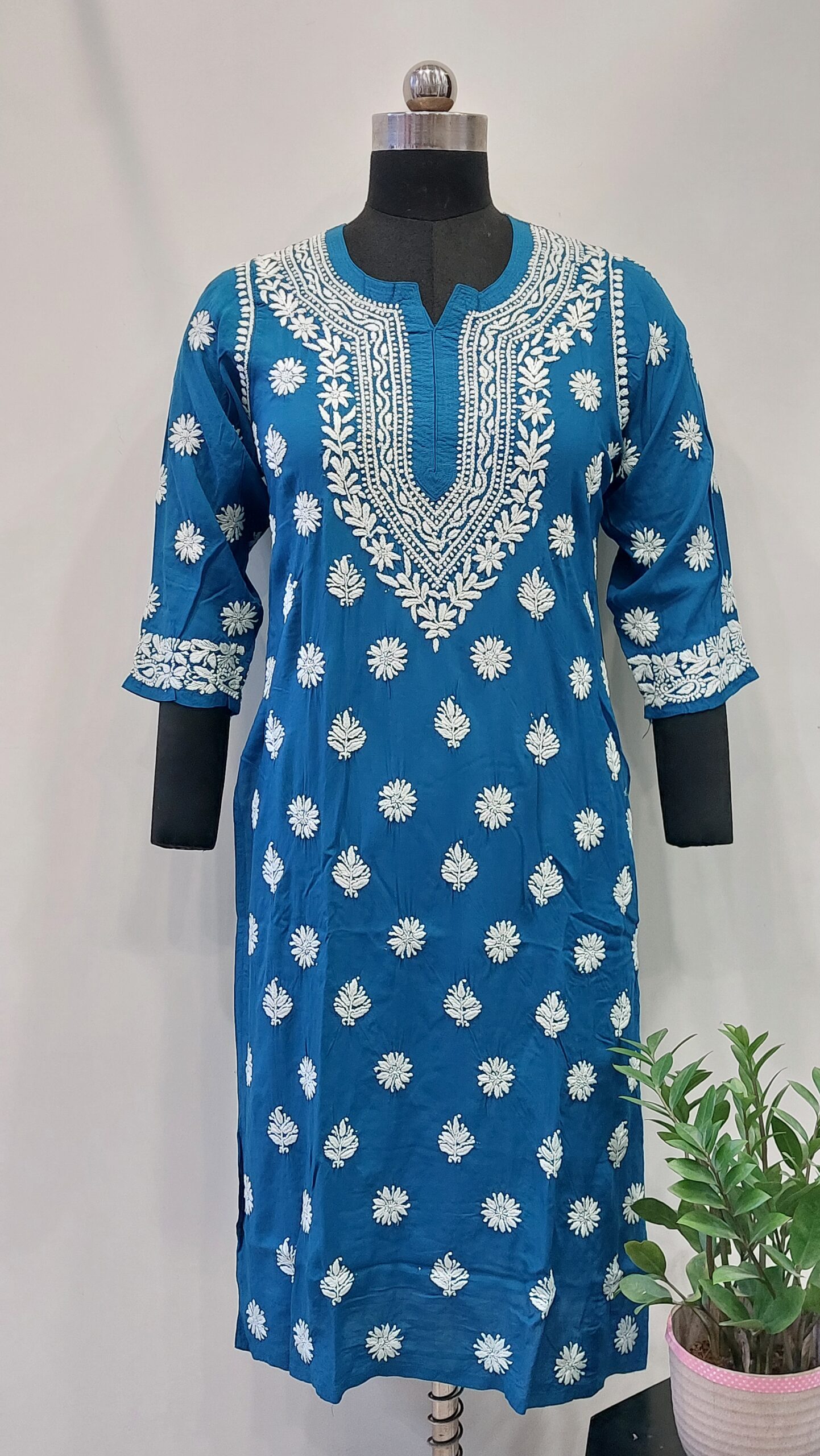 Experience timeless elegance with our Modal Cotton Long Kurta adorned with exquisite Lucknowi Chikankari embroidery. Crafted from luxuriously soft modal cotton, this kurta offers a graceful drape and breathable comfort, making it perfect for both everyday sophistication and festive occasions.