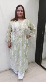 Premium Muslin Silk Chikankari Scallop Cutwork Kurta
