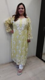 Premium Muslin Silk Chikankari Scallop Cutwork Kurta