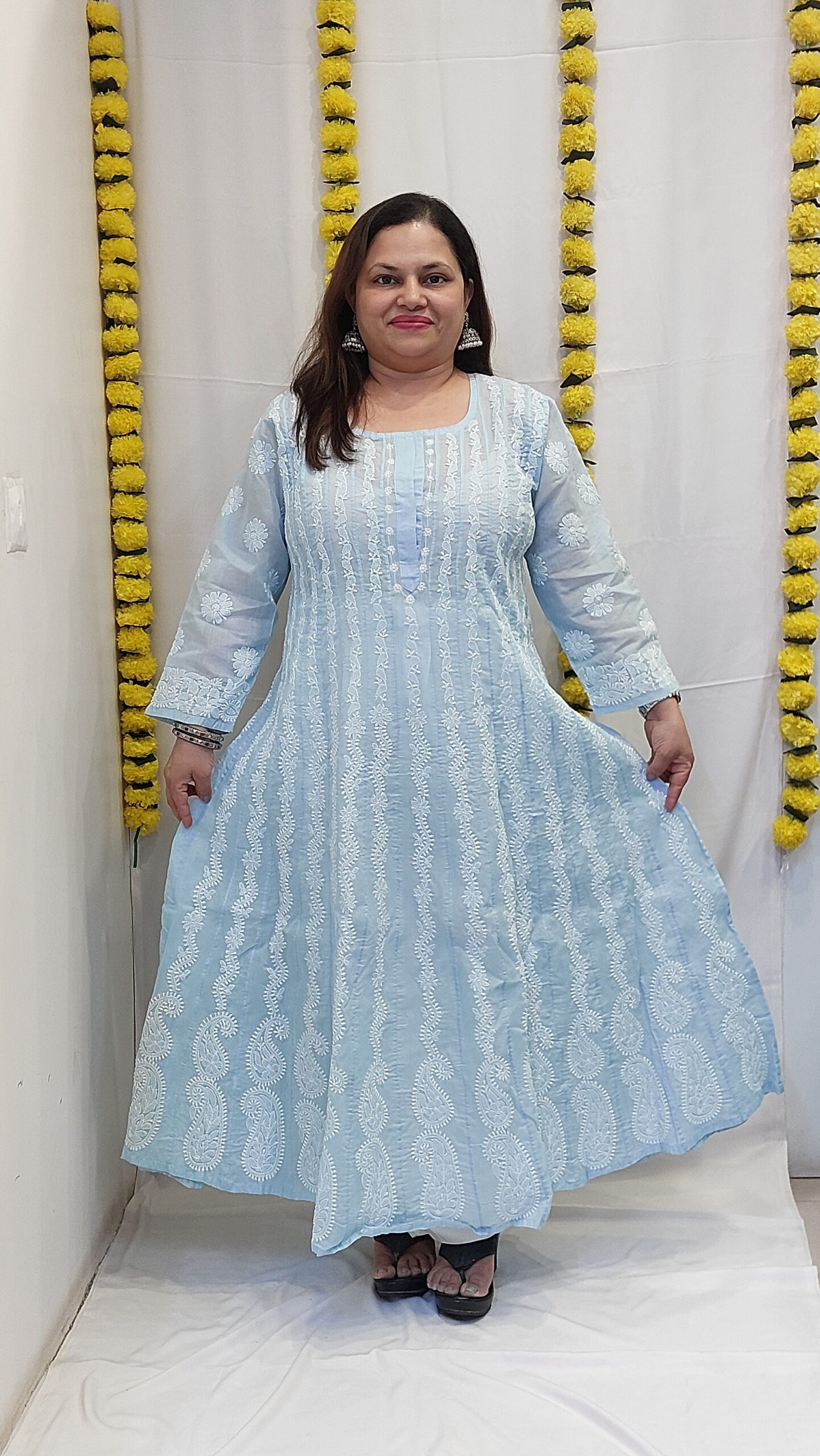 Comfort Fit: Chikankari Kurtas are traditionally worn slightly loose to enhance their drape and allow free movement.